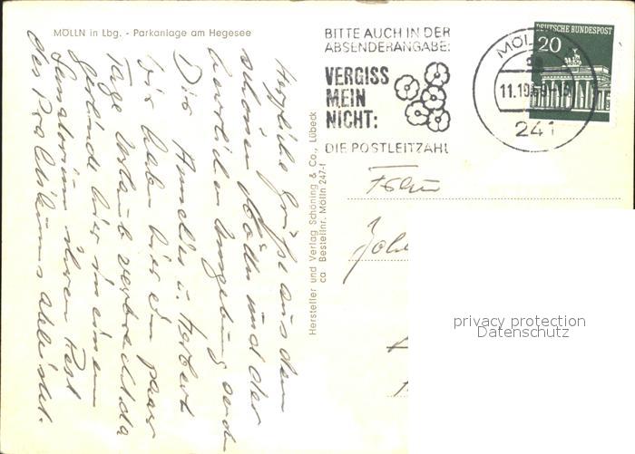 72401050 alte Postkarte Moelln Lauenburg Parkanlage am Hegesee postalisch gelaufen Erhaltung siehe scans KatCode: 11110001053090