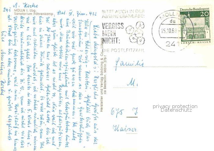 72756518 alte Postkarte Moelln Lauenburg Sanatorium Foehrenkamp postalisch gelaufen Erhaltung siehe scans [WerneD78] KatCode: 11110001053090