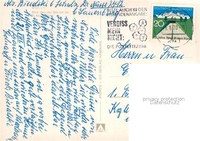73512229 alte Postkarte Moelln Lauenburg Seeblick mit St Nicolaikirche postalisch gelaufen Erhaltung siehe scans [WerneD78] KatCode: 11110001053090
