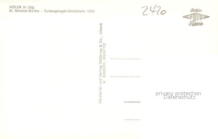 73565592 Moelln Lauenburg St Nicolai Kirche Eulenspiegel Grabstein 1350 postalisch nicht gelaufen Erhaltung siehe scans [WerneD78] KatCode: 11110001053090