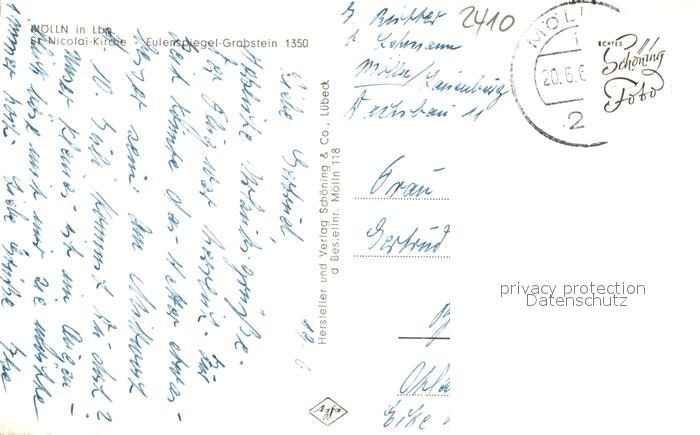 73566218 alte Postkarte Moelln Lauenburg St Nicolai Kirche Eulenspiegel Grabstein postalisch gelaufen Erhaltung siehe scans [WerneD78] KatCode: 11110001053090