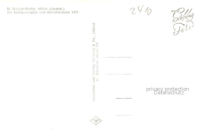 73566210 Moelln Lauenburg St Nicolai Kirche mit Rathaustreppe und Gerichtslaube postalisch nicht gelaufen Erhaltung siehe scans [WerneD78] KatCode: 11110001053090