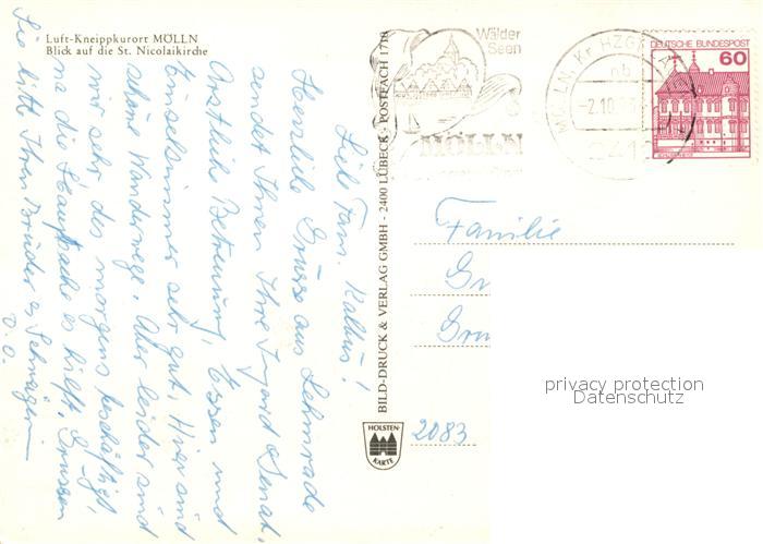 73133530 alte Postkarte Moelln Lauenburg St. Nicolaikirche postalisch gelaufen Erhaltung siehe scans [NatalD47] KatCode: 11110001053090