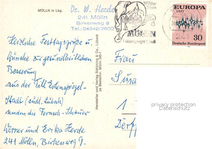 73127379 alte Postkarte Moelln Lauenburg Stadtpanorama im Winter postalisch gelaufen Erhaltung siehe scans [FriedD77] KatCode: 11110001053090