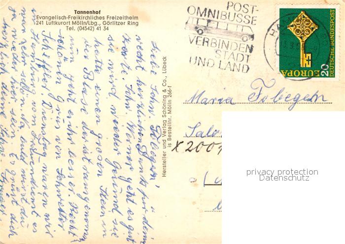 72990395 alte Postkarte Moelln Lauenburg Tannenhof Freizeitheim postalisch gelaufen Erhaltung siehe scans [LiesaD40] KatCode: 11110001053090