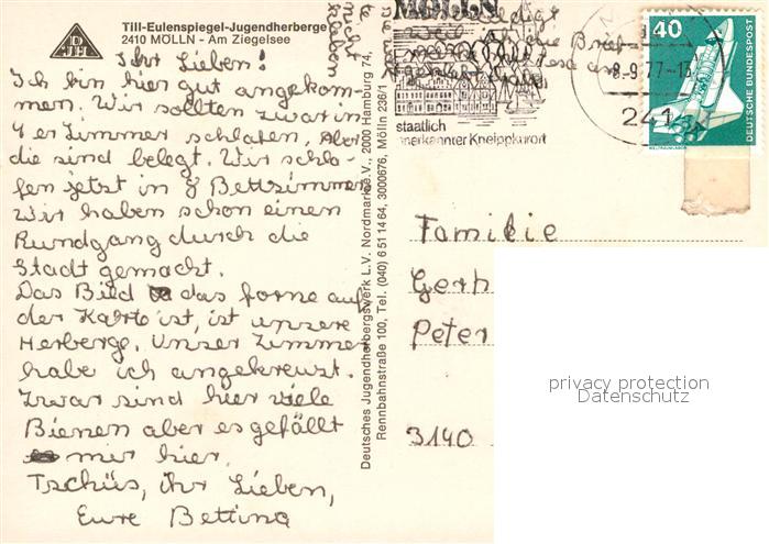 72938201 alte Postkarte Moelln Lauenburg Till Eulenspiegel Jugendherberge postalisch gelaufen Erhaltung siehe scans [WerneD78] KatCode: 11110001053090