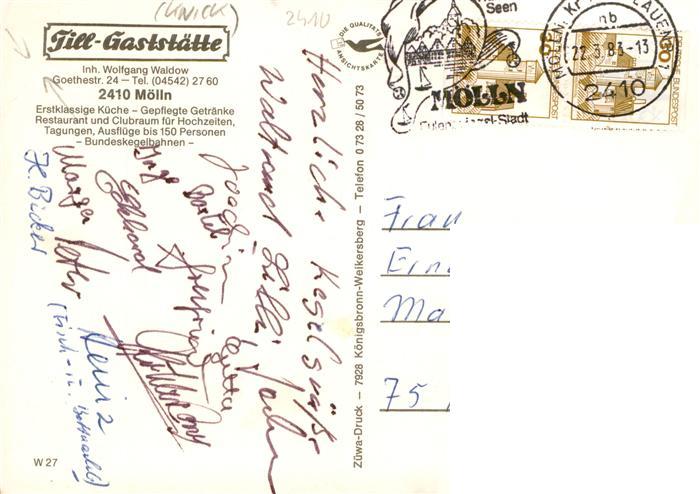 73936386 alte Postkarte Moelln Lauenburg Till Gaststaette Gastraeume Kegelbahn postalisch gelaufen Erhaltung siehe scans [WerneD78] KatCode: 11110001053090