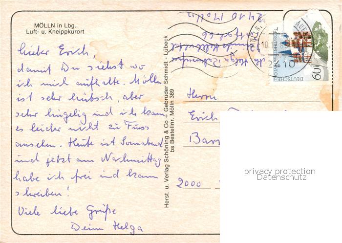 73132939 alte Postkarte Moelln Lauenburg Uferpromenade See Kirche Kurort Naturpark Lauenburgische Seen postalisch gelaufen Erhaltung siehe scans [FriedD77] KatCode: 11110001053090