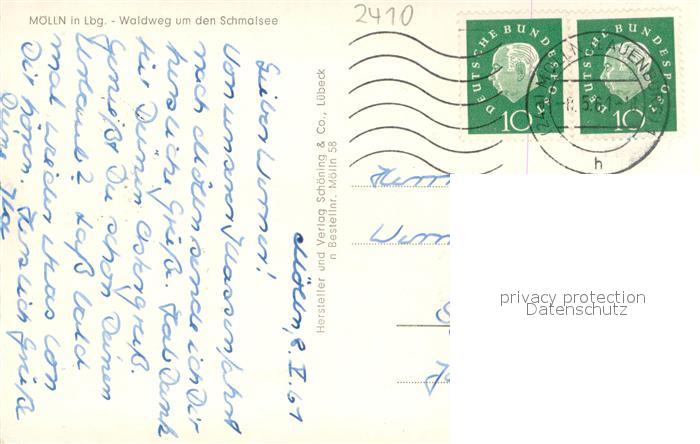 73695048 alte Postkarte Moelln Lauenburg Waldweg um den Schmalsee postalisch gelaufen Erhaltung siehe scans [WerneD78] KatCode: 11110001053090
