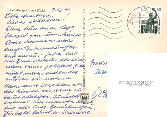 73197738 alte Postkarte Moelln Lauenburg postalisch gelaufen Erhaltung siehe scans [NatalD47] KatCode: 11110001053090