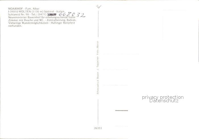 Moelten Suedtirol Moarhof Bauernhof Gaststube Alpenblick postalisch nicht gelaufen Erhaltung siehe scans