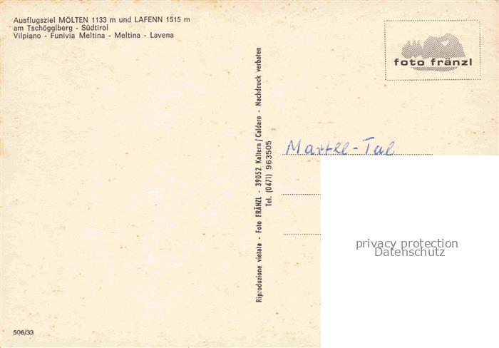 Moelten Suedtirol Vilpien Seilbahn Moelten Lafenn postalisch nicht gelaufen Erhaltung siehe scans [WerneD78] Wern Katcode 11240