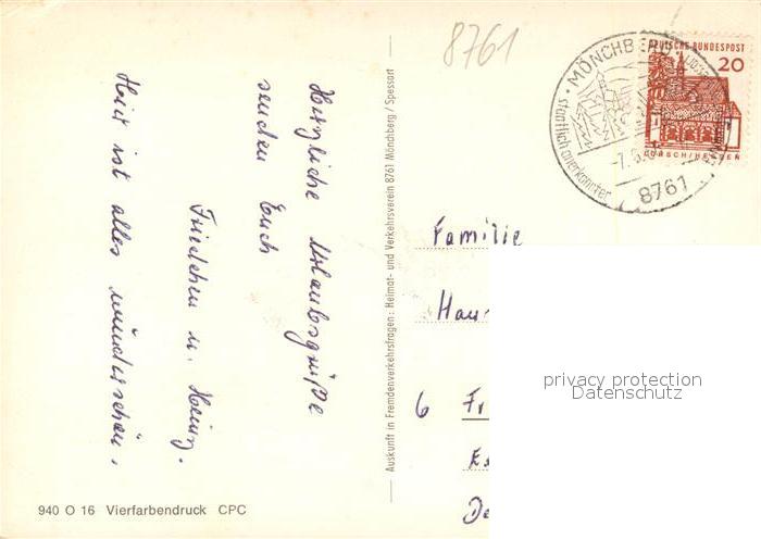 73168383 alte Postkarte Moenchberg Spessart Fachwerkhaus Schwimmbad Kirche Panorama postalisch gelaufen Erhaltung siehe scans [KathaD81] KatCode: 11110009676141