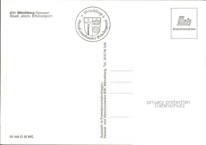 72415976 Moenchberg Spessart Staatl. anerk. Erholungsort postalisch nicht gelaufen Erhaltung siehe scans KatCode: 11110009676141