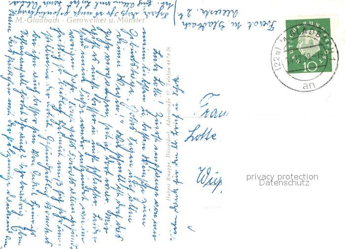 73137823 alte Postkarte Moenchengladbach Geroweiher Muenster postalisch gelaufen Erhaltung siehe scans [NatalD47] KatCode: 11110005116000