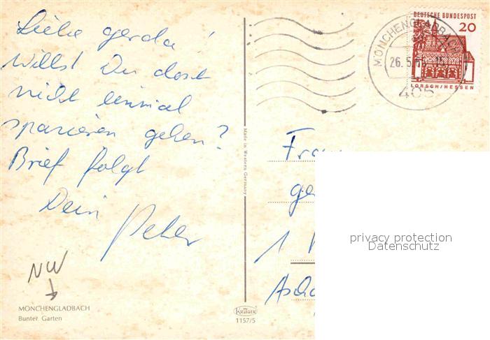 72910928 alte Postkarte MoeNCHENGLADBACH NRW Bunter Garten postalisch gelaufen Erhaltung siehe scans [FriedD77] KatCode: 11110005116000