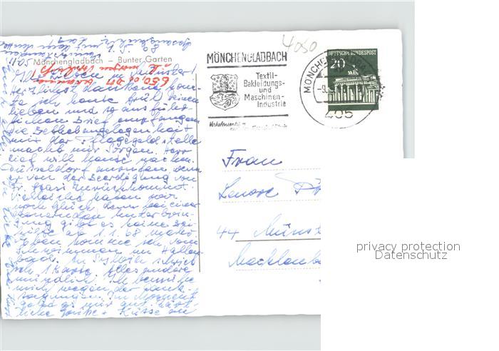 71936857 alte Postkarte MoeNCHENGLADBACH NRW Bunter Garten Brunnenfigur postalisch gelaufen Erhaltung siehe scans KatCode: 11110005116000