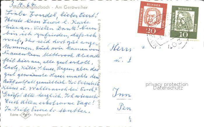 72093140 alte Postkarte MoeNCHENGLADBACH NRW Geroweiher postalisch gelaufen Erhaltung siehe scans KatCode: 11110005116000