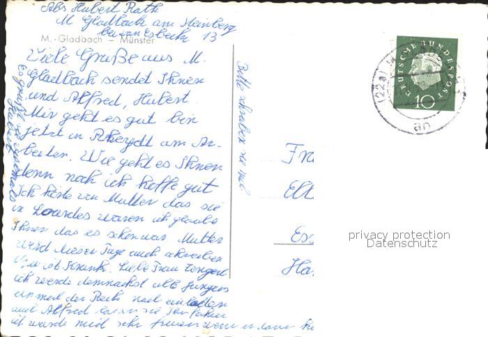 72168402 alte Postkarte MoeNCHENGLADBACH NRW Muenster postalisch gelaufen Erhaltung siehe scans KatCode: 11110005116000