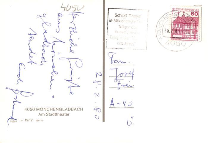 73943586 MoeNCHENGLADBACH NRW Partie am Stadttheater Wasserspiele postalisch gelaufen Erhaltung siehe scans [FriedD77] alte Postkarte Frie Katcode 11110005116000