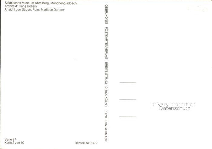 72478421 MoeNCHENGLADBACH NRW Staedt Museum Abteiberg postalisch nicht gelaufen Erhaltung siehe scans KatCode: 11110005116000