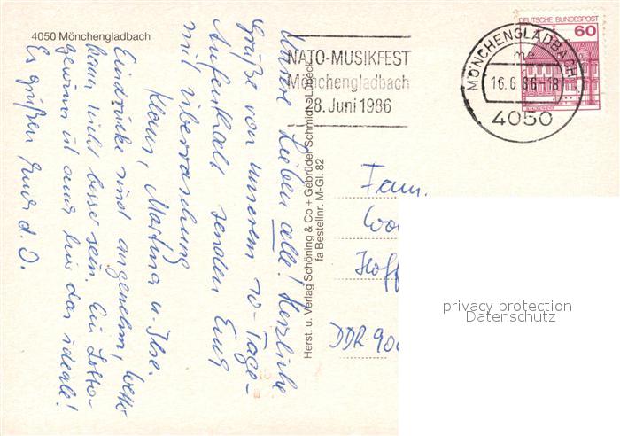73273011 alte Postkarte Moenchengladbach Wasserturm Park Schloss Marktplatz postalisch gelaufen Erhaltung siehe scans [WerneD78] KatCode: 11110005116000