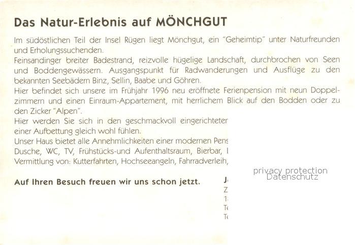 73643221 Moenchgut Ruegen Pension Am Hafen Fliegeraufnahme postalisch nicht gelaufen Werbekarte (keine Postkarte) Erhaltung siehe scans [WerneD78] KatCode: 11110013061004