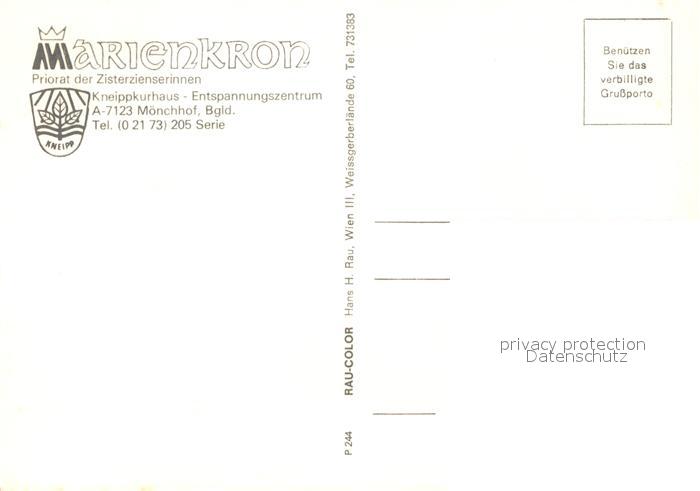 73157197 Moenchhof Burgenland Marienkron Priorat der Zisterzienserinnen Park Wassertreten postalisch nicht gelaufen Erhaltung siehe scans [FriedD77] KatCode: 11390112010712
