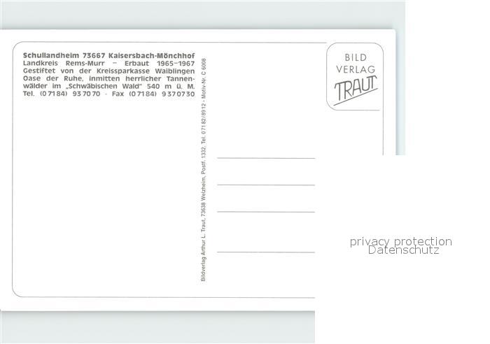 72255211 Moenchhof Kaisersbach Schullandheim postalisch nicht gelaufen Erhaltung siehe scans KatCode: 11110008119037