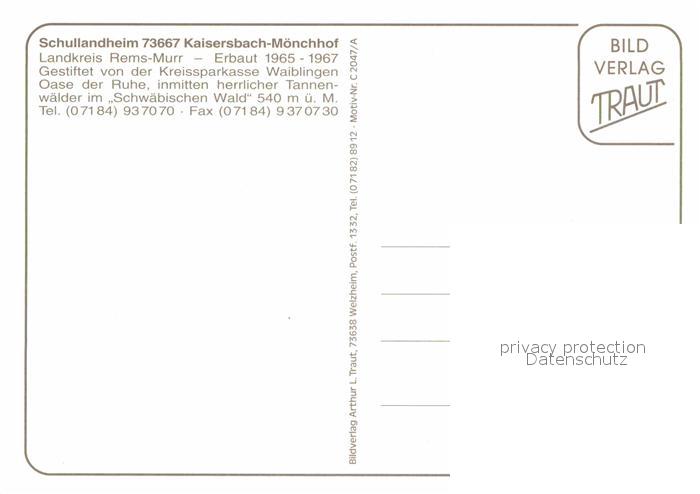 72905797 Moenchhof Kaisersbach Schullandheim im Schwaebischen Wald postalisch nicht gelaufen Erhaltung siehe scans [FriedD77] KatCode: 11110008119037
