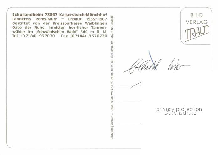 72905798 Moenchhof Kaisersbach Schullandheim im Schwaebischen Wald postalisch nicht gelaufen Erhaltung siehe scans [FriedD77] KatCode: 11110008119037