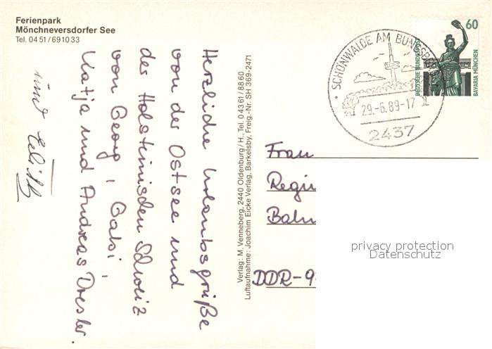 73169034 alte Postkarte Moenchneversdorf Fliegeraufnahme Ferienpark Moenchneversdorfer See postalisch gelaufen Erhaltung siehe scans [WerneD78] KatCode: 11110001055038