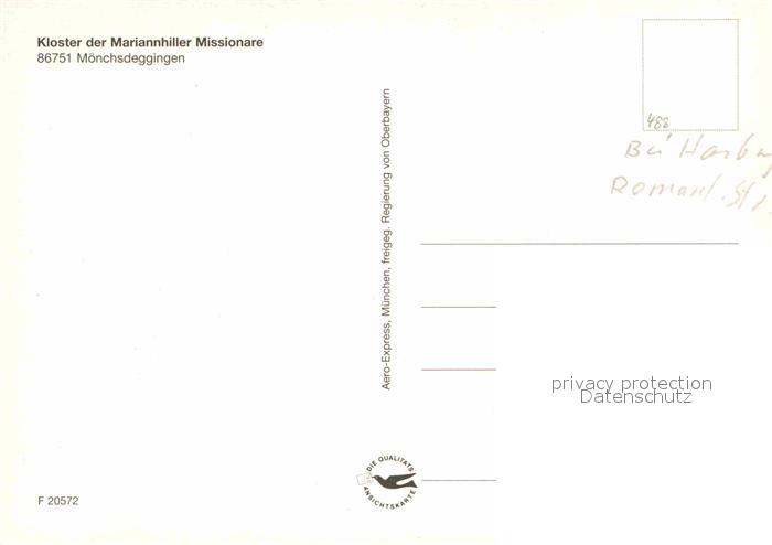 72839546 Moenchsdeggingen Fliegeraufnahme Kloster der Mariannhiller Missionare postalisch nicht gelaufen Erhaltung siehe scans [AndreD76] KatCode: 11110009779184