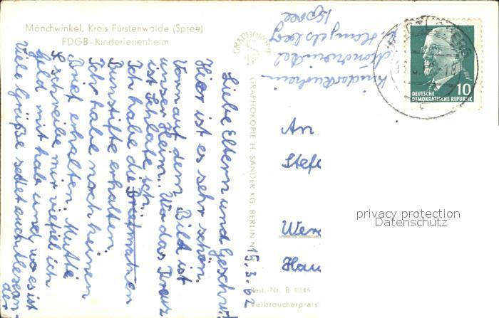 72384318 alte Postkarte Moenchwinkel FDGB-Kinderferienheim postalisch gelaufen Erhaltung siehe scans KatCode: 11110012067201