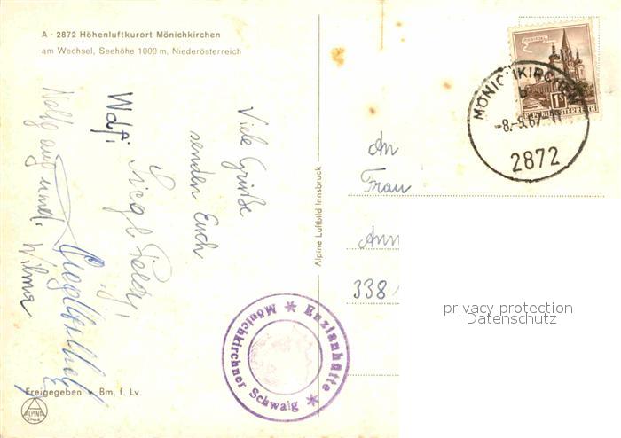 72680577 alte Postkarte Moenichkirchen am Wechsel Fliegeraufnahme postalisch gelaufen Erhaltung siehe scans [WerneD78] KatCode: 11390122031815