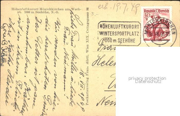 72038740 alte Postkarte Moenichkirchen Ortsansicht postalisch gelaufen Erhaltung siehe scans KatCode: 11390122031815