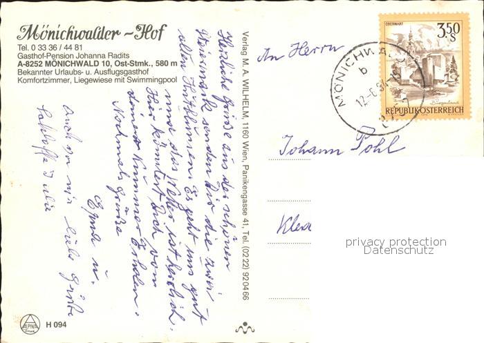 72421096 alte Postkarte Moenichwald Moenichwalder Hof postalisch gelaufen Erhaltung siehe scans KatCode: 11390224060719