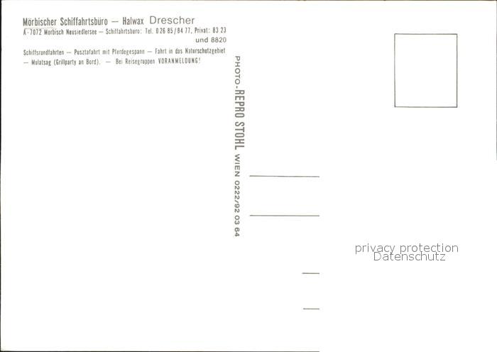 72483698 Moerbisch See Schiffahrtsbuero Halwax Pusztafahrten mit Pferdegespann Multasag Schiffsrundfahrten Dorfpartie postalisch nicht gelaufen Erhaltung siehe scans KatCode: 11390112010307