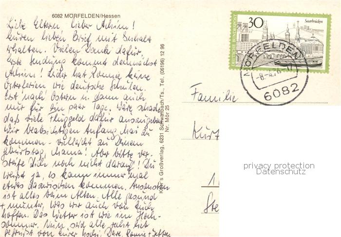73862942 alte Postkarte Moerfelden-Walldorf Rathaus Schule Park Ortspartie postalisch gelaufen Erhaltung siehe scans [WerneD78] KatCode: 11110006433008