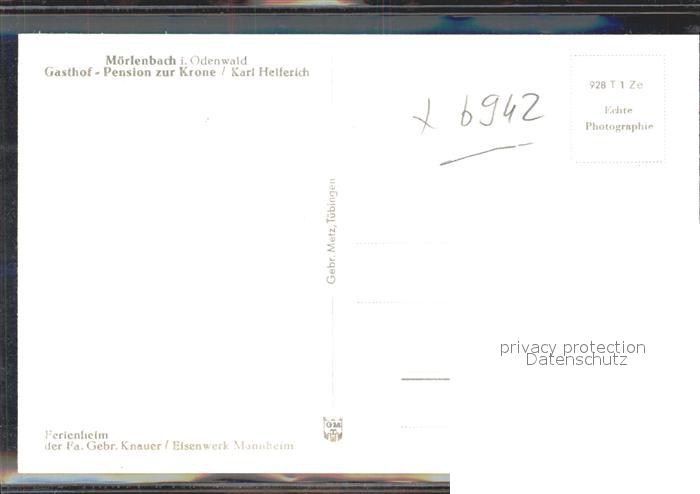 41988886 Moerlenbach Gasthof Pension Zur Krone postalisch nicht gelaufen Erhaltung siehe scans KatCode: 11110006431017