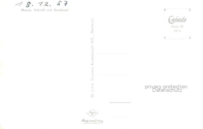 43492227 Moers Schloss mit Denkmal postalisch nicht gelaufen Erhaltung siehe scans [LiesaD40] KatCode: 11110005170024