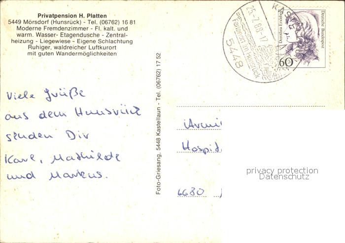 72149620 alte Postkarte Moersdorf Hunsrueck Pension Plattn Gaststube Zimmer postalisch gelaufen Erhaltung siehe scans KatCode: 11110007135063