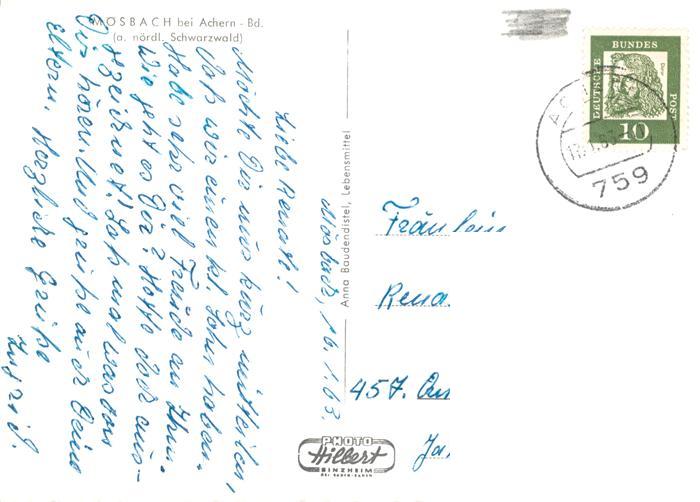 73877918 alte Postkarte Moesbach Ortsansichten Kirche Panorama Schwarzwald postalisch gelaufen Erhaltung siehe scans [FriedD77] KatCode: 11110008317001