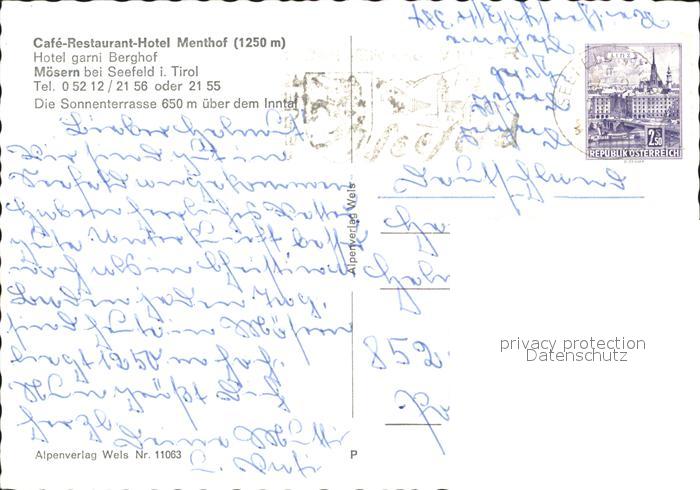 71909402 alte Postkarte Moesern Cafe Restaurant Hotel Menthof postalisch gelaufen Erhaltung siehe scans KatCode: 11390332070357