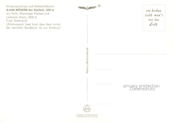 73491957 Moesern mit Telfs Mieminger Plateau und Lechtaler Alpen postalisch nicht gelaufen Erhaltung siehe scans [WerneD78] KatCode: 11390332070357