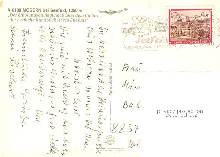 73364315 alte Postkarte Moesern Panorama Inntal Reitherspitze Karwendelgebirge Fliegeraufnahme postalisch gelaufen Erhaltung siehe scans [FriedD77] KatCode: 11390332070357