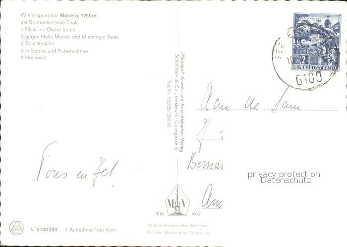 71981889 alte Postkarte Moesern Schlittenfahrt postalisch gelaufen Erhaltung siehe scans KatCode: 11390332070357
