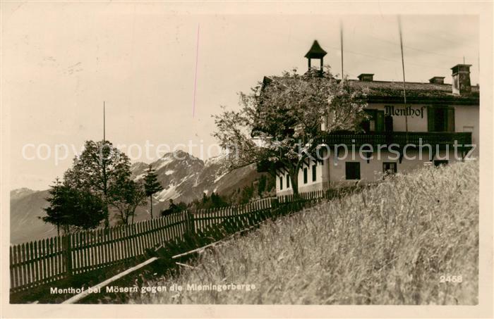 73818591 alte Postkarte Moesern Telfs Tirol AT Menthof mit Miemingerbergen postalisch gelaufen Erhaltung siehe scans [FriedD77] KatCode: 11390332070357