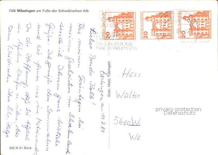 72204338 alte Postkarte Moessingen Aufbau Gymnasium Schwimmbad Rathaus Gottlieb Ruehle Volksschule postalisch gelaufen Erhaltung siehe scans KatCode: 11110008416025