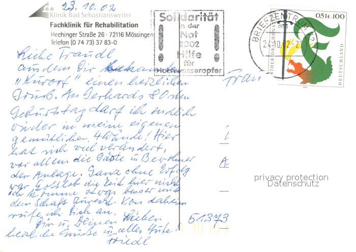 72948816 alte Postkarte Moessingen Fachklinik fuer Rehabilitation Fliegeraufnahme postalisch gelaufen Erhaltung siehe scans [WerneD78] KatCode: 11110008416025